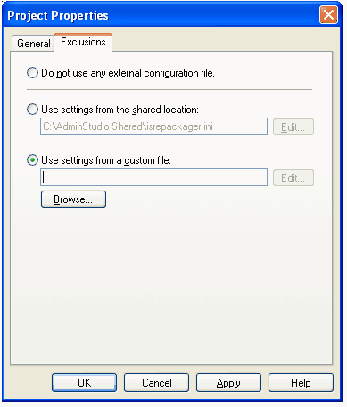 1. From the Repackager Project menu, select Properties. The General tab of the Project Properties dialog box opens.
