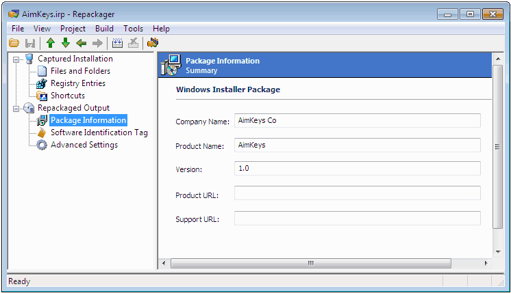 Select Package Information from the View List. The Package Information view opens, where you can specify information for the Windows Installer package that you build from the Repackager project. Much of this information may be prepopulated based on settings used in the Repackaging Wizard.