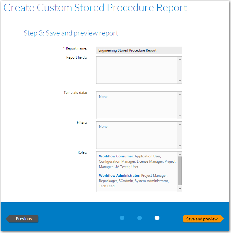 You have the option of generating a Workflow Manager report using a stored procedure. A Custom Stored Procedure Report is a report on data generated by Workflow Manager that is defined by specifying a stored procedure.