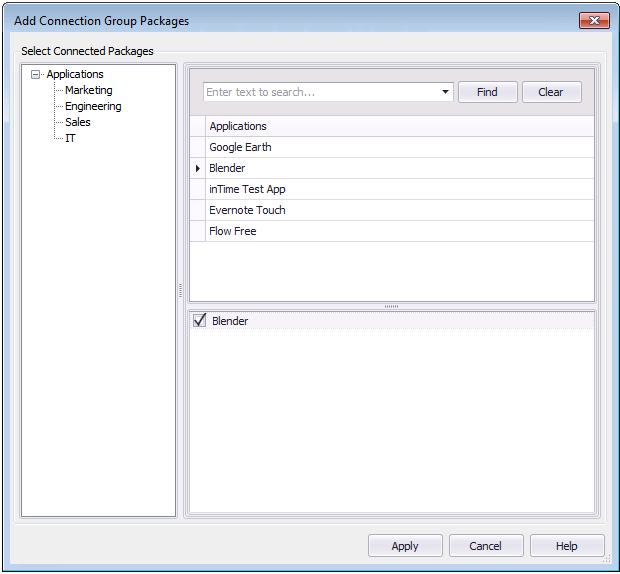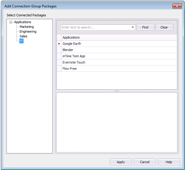 Under Select Connected Packages, select the group in the tree that contains the App-V package that you want to add to the connection group. The packages in that group are listed under Applications.