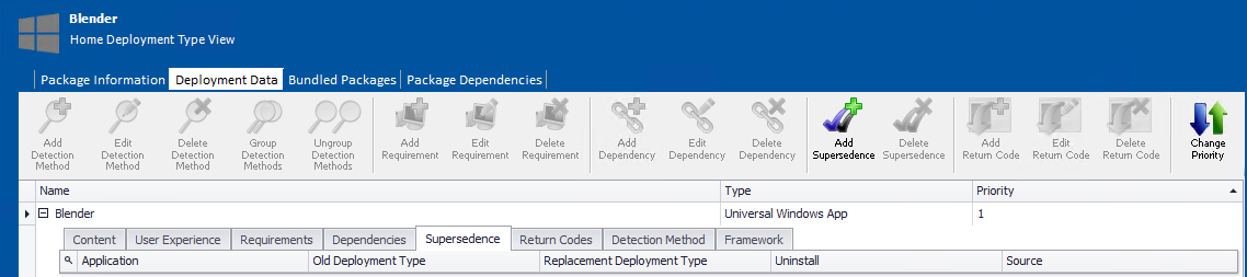 Click the Deployment Data tab and open the Supersedence subtab.