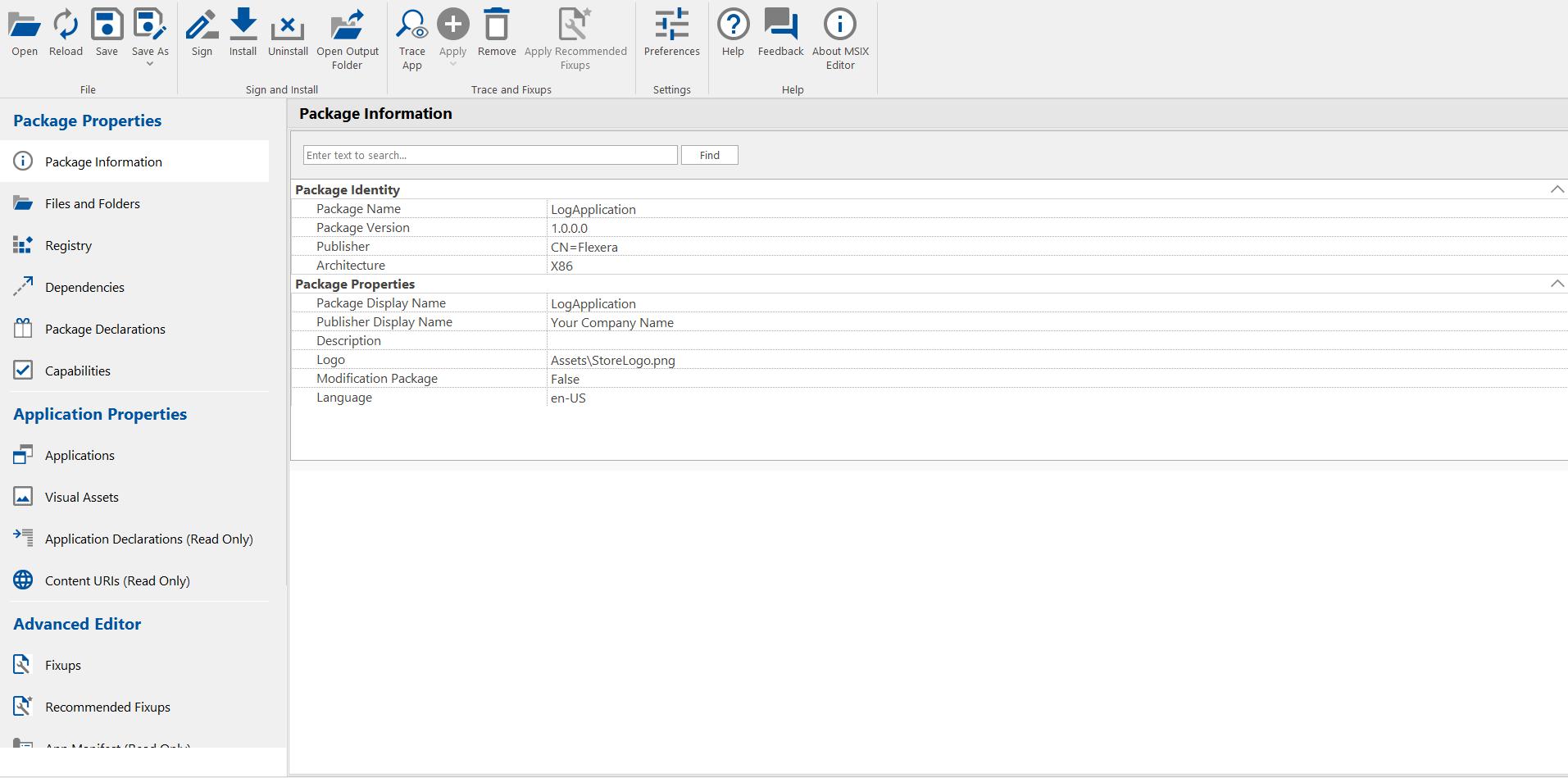 Open the desired MSIX Package in the MSIX Editor. For more information, see Opening an MSIX Package.