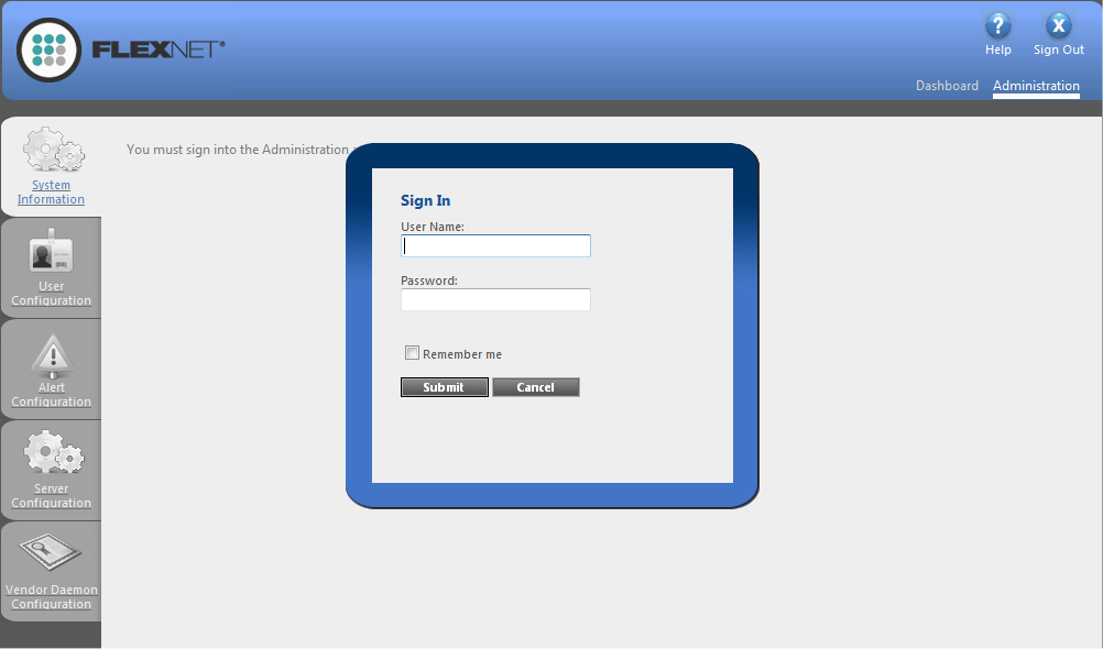 If the FlexNet Licensing Server is configured to run as a service, you can start the FlexNet Licensing Server service by using the Windows Services administrative tool. If the FlexNet Licensing Server is not configured to run as a service, you can start it by running lmadmin.exe. The FlexNet Licensing Server must be started in order to allow users to check out and check in licenses.